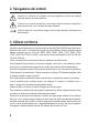 2. Spiegazione dei simboli Il simbolo con il fulmine in un triangolo è usato per segnalare un rischio per la salute, come per esempio le scosse elettriche. Il simbolo con un punto esclamativo in un triangolo indica informazioni importanti in queste istruzioni per l’uso, che devono essere rispettate. Il simbolo freccia si trova laddove vengono forniti consigli speciali e informazioni sul funzionamento. 3.