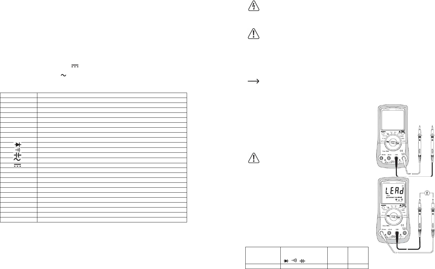 Kromě toho se v každém režimu měření na displeji zobrazuje správný způsob připojení