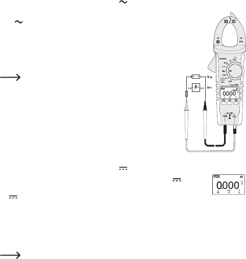 - Accendere il DMM e selezionare il campo di misurazione “V ”. Premere
