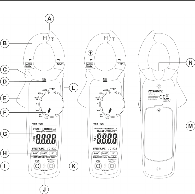 F Rotary dial for selecting the measurement mode