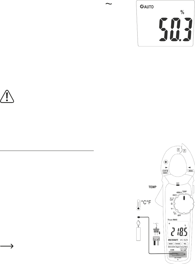 • Turn on the DMM and select the “TEMP” measurement mode. “°C” will ap-