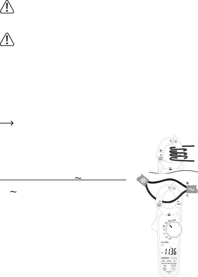 Veillez à ce que le l conducteur passe toujours au centre de la pince ampèremétrique (respectez les marquages