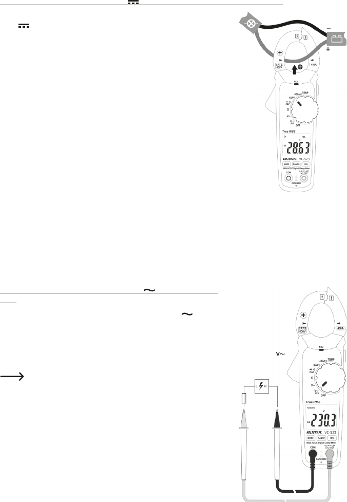 Pour mesurer des courants continus (A ), procédez comme suit (VC-523 seulement) :