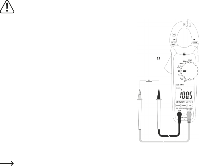 • Reliez maintenant les deux pointes de mesure à l’objet à mesurer. La va-