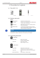LWT-110 The product at a glance | 5 Function key Press briefly Long press, 2s Freeze measurement Return to measurement display Call up next parameter Open menu, frozen measurement is displayed Close menu, changes are saved B-H87.0.02.DB214-1.