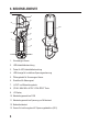 - 6. Éléments de commande 13 1 2 4 3 5 7 12 6 8 9 11 10 1. Capteur de la pince ampèremétrique 2. Éclairage à DEL de la zone de travail 3. Bouton-poussoir pour l’éclairage à DEL de la zone de travail 4. Indicateur à DEL pour la détection de tension sans contact 5. Levier d’ouverture du capteur de la pince ampèremétrique 6. Molette de réglage pour le type de mesure 7. Touche « HOLD » et d’éclairage 8. Touche « PEAK / MAX MIN / AC/DC / DCA-ZERO » 9. Écran à cristaux liquides 10.