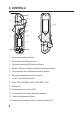 - 6. Controlli 13 1 2 4 3 5 7 12 6 8 9 11 10 1. Sensore della sonda di corrente 2. Illuminazione LED dell‘area di lavoro 3. Tasto per illuminazione LED dell‘area di lavoro 4. Indicatore LED per il rilevamento della tensione senza contatto 5. Leva di apertura per il sensore della sonda di corrente 6. Manopola di regolazione per il tipo di misura 7. „HOLD” e tasto dell‘illuminazione 8. Tasto “PEAK / MAX MIN / AC/DC / DCA-ZERO“ Taste 9. Display LCD 10. Connessione cavo di misura COM 11.