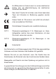 Ein Blitzsymbol im Dreieck warnt vor einem elektrischen Schlag oder der Beeinträchtigung der elektrischen Sicherheit des Geräts. Das „Hand“-Symbol ist zu finden, wenn Ihnen besondere Tipps und Hinweise zur Bedienung gegeben werden sollen.