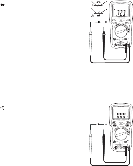- Im Display wird die Durchlassspannung „UF“ in Volt (V)