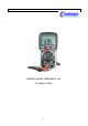 - Enosmerni tok (DC) Območje 200μA 2000μA 20mA 200mA 2A 10A Razno Izmenični tok (AC) Območje 200μA 2000μA 20mA 200mA 2A 10A Razno Upornost Območje 200Ω 2kΩ 20kΩ 200kΩ 2MΩ 20MΩ Razno Temperatura Območje -30 do 0oC 1 do +230oC Čas odzivnosti Oddajnost Merilna optika Ločljivost Natančnost 0,1μA 0μA ± (1,5% + 5) 0,01mA 0,1mA 0,001A ± (2,5% + 5) 0,01A Zaščita pred preobremenitvijo: varovalke; 600V; omejitev časa meritve >5A: maksimalno 30 s z 15 minutnim premorom Ločljivost Natančnost 0,1μA 0μA ± (2% + 5) 0,0