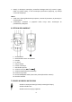 • Baterij ni dovoljeno razstavljati, povzročati kratkega stika ali jih metati v ogenj. Nikoli ne polnite baterij, ki niso namenjene ponovnemu polnjenju, saj obstaja nevarnost eksplozije! Razno • Kadar ste v dvomu glede delovanja naprave, varnosti ali povezave, se posvetujte s strokovnjakom. • Vzdrževanje, predelave in popravila lahko izvaja samo strokovnjak ali pooblaščena prodajalna. 6. SESTAVNI DELI NAPRAVE 1. Gumb SELECT 2. Brezkontaktni senzor za napetost 3. Svetilka 4. LC zaslon 5.