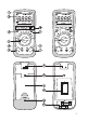Bedienelemente Siehe Ausklappseite 1 2 3 4 5 6 7 8 9 10 11 12 13 14 15 16 Angespritzter Gummischutz Display SELECT-Taste zur Funktionsumschaltung (rote Symbole) Drehschalter zur Messfunktionswahl mAµA-Messbuchse 10 A-Messbuchse HzVΩ-Messbuchse (bei Gleichgrößen „Plus“) COM-Messbuchse (Bezugspotential, „Minus“) Low Imp.