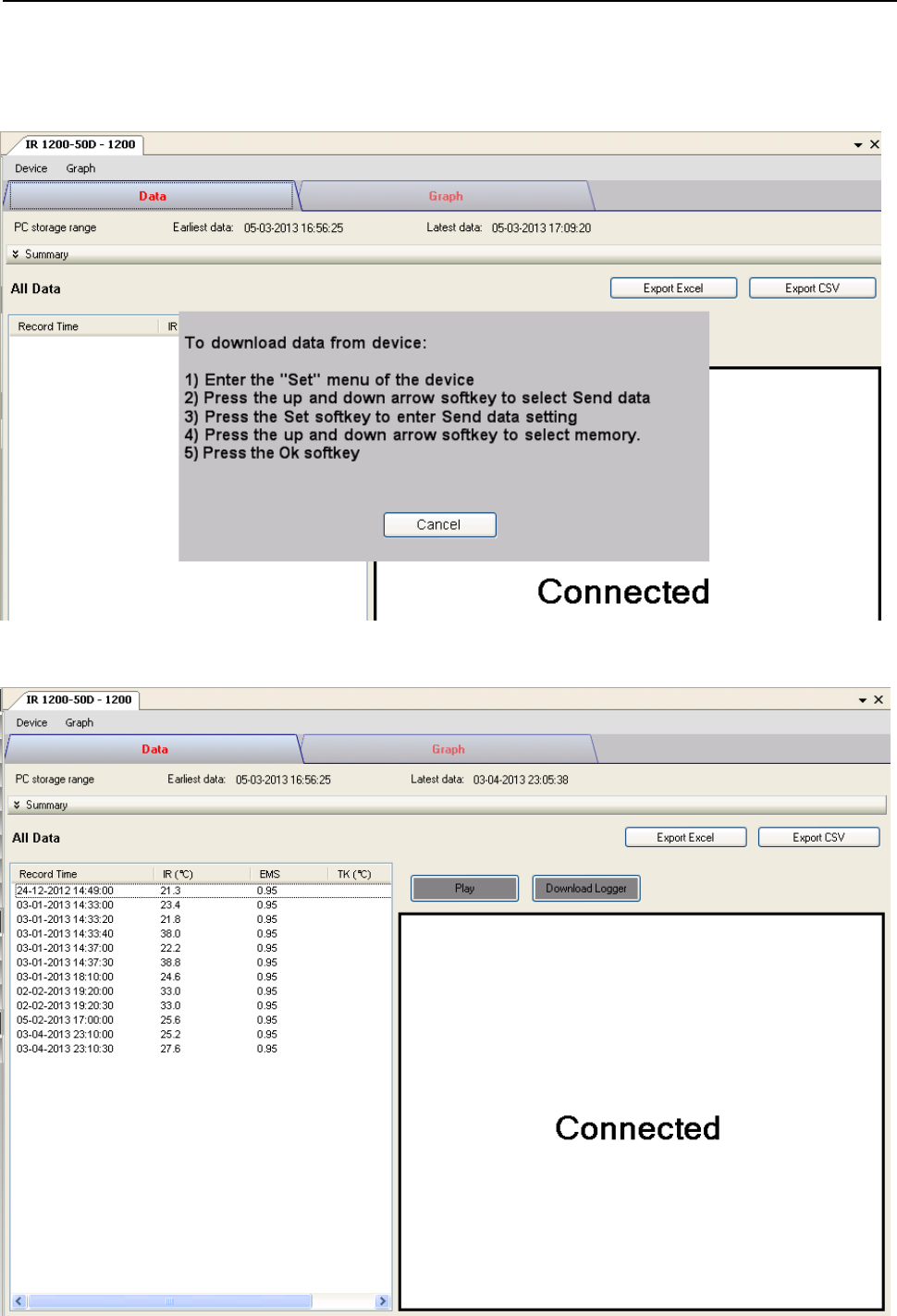 Click the “Download Logger” button in the device control panel will trigger the download data