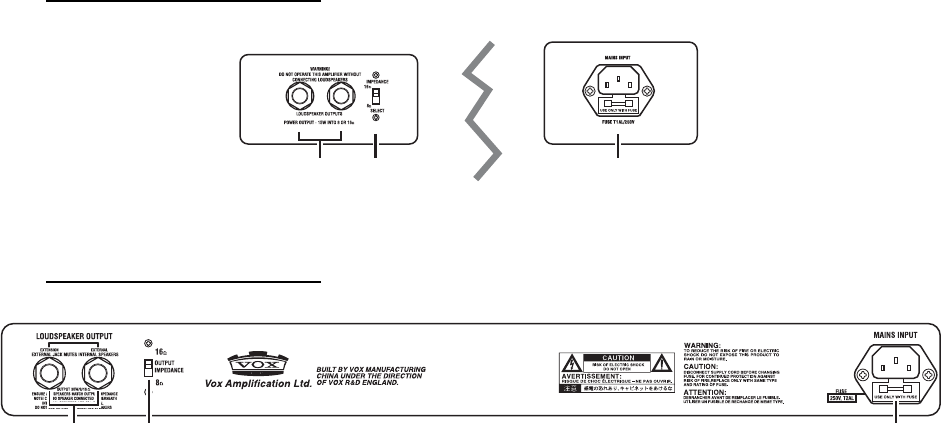AC30: Internal speaker is connected to the socket underneath the chassis. Rear panel sockets