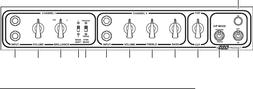 clásicos AC30 “TREBLE”. Así que las posiciones ahora son: - OFF = respuesta plana, 1 = agudos