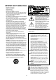 IMPORTANT SAFETY INSTRUCTIONS • • • • • • • • • • • • • • • • • • • • • Read these instructions. Keep these instructions. Heed all warnings. Follow all instructions. Do not use this apparatus near water. Mains powered apparatus shall not be exposed to dripping or splashing and that no objects filled with liquids, such as vases, shall be placed on the apparatus. Clean only with dry cloth. Do not block any ventilation openings. Install in accordance with the manufacturer's instructions.