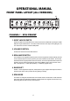 OPERATIONAL MANUAL FRONT PANEL LAYOUT (ALL VERSIONS) 13 1 2 3 4 5 6 7 8 9 10 11 12 CHANNEL I – EF86 PREAMP 1. INPUT JACK SOCKETS Guitar input jacks into the EF86 channel. These are wired in the traditional way that gives a 6dB difference in gain between them. The socket nearer the front of the amp is the higher gain, the one nearest the rear of the chassis is 6dB quieter. 2. VOLUME CONTROL Controls the volume level of the EF86 channel. 3.