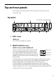 Top and rear panels In this chapter we're going to take a look at the top and rear panels of your Valvetronix amp. Top panel The illustration shows the VT20+. 3 2 1 4 5 8 6 9 7 1. INPUT section INPUT jack This is where you plug in your guitar. 2. PRESETS/MANUAL section PRESET switch and LED, MANUAL LED Use this to switch to Preset mode or Manual mode, PRESET LED and to select preset programs (basic, effect, song).