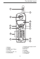 The Handset Layout 1 7 2 8 9 3 4 10 11 5 12 6 13 7. Incoming Call/Handset On LED 8. LCD Display 9. Soft Keys 10. Volume 11. Off (Clear) 12. Sound Select 13. Microphone 1. Antenna 2. Earpiece 3. Headset Jack (2.5mm) 4. On (Flash) 5. Dialing Keys (0-9, *, #) 6.