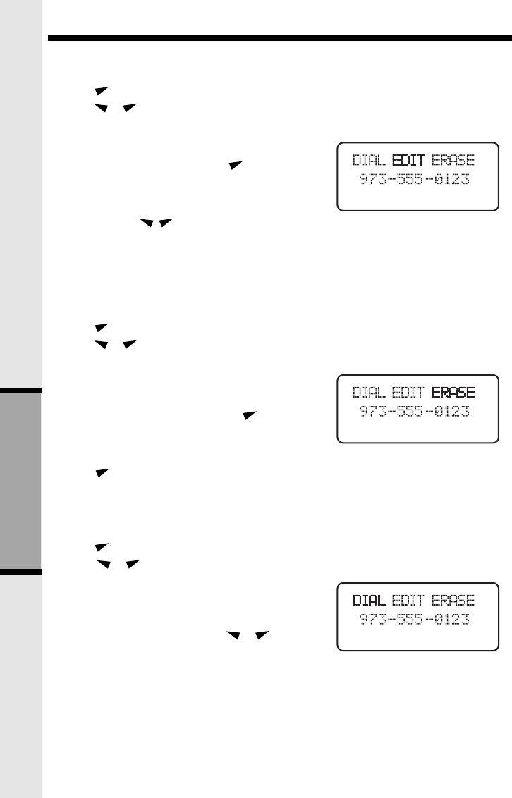 2. Press or to scroll alphabetically through numbers stored in memory,