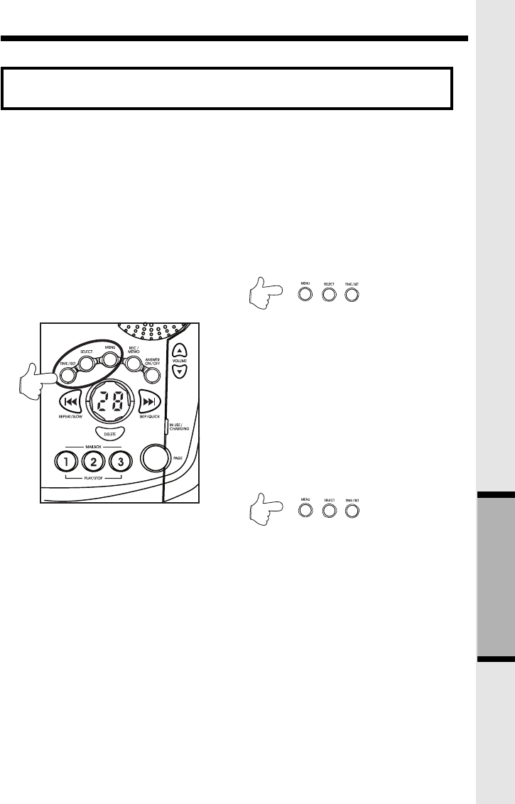 3. Press TIME/SET to confirm your choice. The selected setting is then announced.
