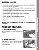 • Install batteries correctly observing the polarity (+, -) signs to avoid leakage. • Do not mix old and new batteries. • Do not mix batteries of different types: alkaline, standard (carbon-zinc) or rechargeable (nickel-cadmium). • Remove the batteries from the equipment when the unit will not be used for an extended period of time. • Always remove exhausted batteries from the equipment. • Do not dispose of batteries in fire. • Do not attempt to recharge ordinary batteries.