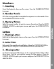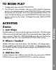 Numbers 1. Counting Count the footprints shown on the screen. Press the NUMBER BUTTONS to answer. 2. Number Puzzle Fill in the missing number to complete the sequence in number order. Press the NUMBER BUTTONS to answer. Select the correct number of spots to uncover the picture. Move the SHOE CURSOR MOUSE to select your answer and press the ENTER BUTTON to confirm. Letters 1. Floating Letters Help find the floating letter shown on the screen. Press the LETTER BUTTONS to answer. Activities 3.