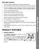 BATTERY NOTICE • Use new alkaline batteries for maximum performance. • Use only batteries of the same or equivalent type as recommended. • Do not mix different types of batteries: alkaline, standard (carbonzinc) or rechargeable (Ni-Cd, Ni-MH), or new and used batteries. • Do not use damaged batteries. • Insert batteries with the correct polarity. • Do not short-circuit the battery terminals. • Remove batteries during long periods of non-use. • Do not dispose of batteries in fire.