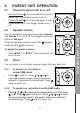 the parent unit and/or baby unit outdoors in the rain, or handle it with wet