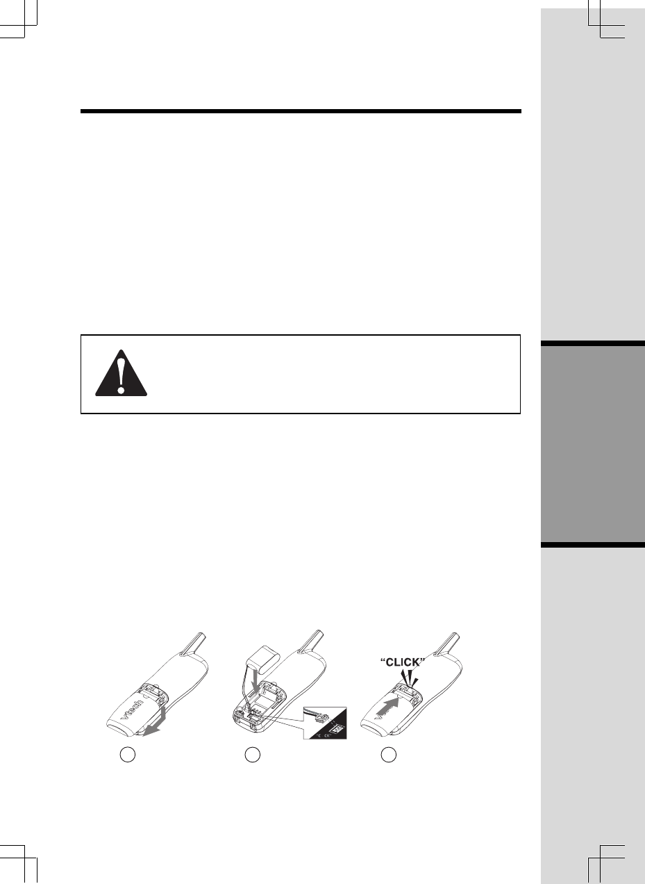 1. Remove the battery compartment cover on the handset by pressing on the