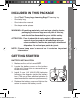 INCLUDED IN THIS PACKAGE - One VTech® Crazy Legs Learning Bugs™ learning toy - One baby bug - One instruction manual - Six shape sorter pieces ATTENTION : Pour la sécurité de votre enfant, débarrassezvous de tous les produits d’emballage tels que rubans adhésifs, feuilles de plastique, attaches et étiquettes. Ils ne font pas partie du jouet. NOTE: Please keep user’s manual as it contains important information.