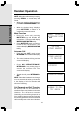 Answering System Operation Basic Operation MESSAGE WINDOW DISPLAY WINDOW DISPLAYS 0 1-98 TO INDICATE: 0-99 Memory is full or total number of messages is 99. F Counting 1 to 99 No messages in any mailbox. Total number of messages in all mailboxes. Duration of announcement or memo recording. (Maximum length of announcement is 90 seconds.) 99 (flashing) Length of recording is more than 99 seconds. 1-99 (flashing) New message number message playback.