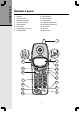 Getting Started Handset Layout 1. 2. 3. 4. 5. 6. 7. 8. Antenna Volume Control Speakerphone LED CID (Scroll Down) Select (Menu) On (Flash) Dialing Keys (0-9, , #) Redial (Pause) 9. 10. 11. 12. 13. 14. 15. 16. Mute (Delete) Speakerphone LCD Display Headset jack (2.