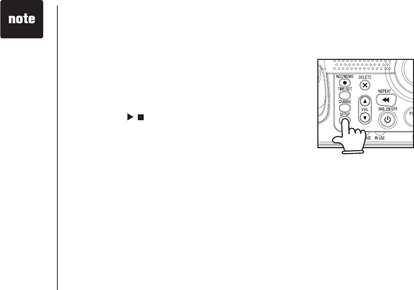 • Press SETUP four times until you hear “Announcement only. Record no messages. To change