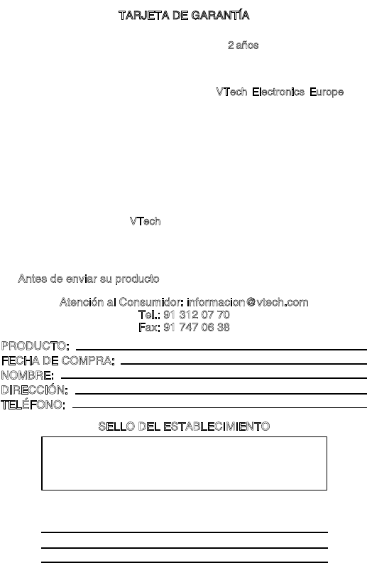 de garantía, éste puede ser devuelto a VTech Electronics Europe o al