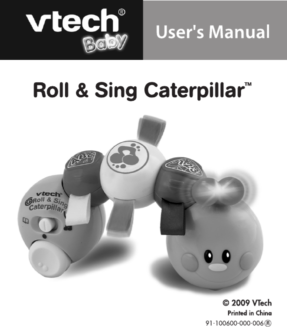 INTRODUCTION Thank you for purchasing the VTech® Roll & Sing Caterpillar™ learning toy! twisting shape buttons On/off/mode selector switch ROLLER LIGHT-UP ANTENNA TACTILE RIBBONS Introduction The VTech® Roll & Sing Caterpillar™ is a fun electronic learning toy for babies! Twist the shape buttons and push the caterpillar along to learn colors, shapes, A-B-C’s, 1-2-3’s and hear fun phrases and sounds through two modes of play.