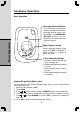 Telephone Operation Base Operation Message Waiting Indicator Basic Operation If you subscribe to telephone company voicemail with a visual message waiting signal, this light flashes, and MESSAGES WAITING displays on the Handset screen, when you have voicemail waiting. Page/Handset Locator Press to page the Handset. Press again, press OFF on Handset, or place Handset in it’s Base to cancel the page. In Use/Charging Indicator • Flashes in unison with the ring of an incoming call.