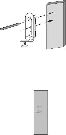 holes as shown. Then remove the wall mount and drill two holes in the