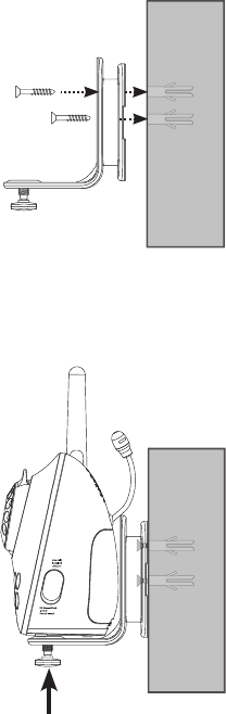 Align the wall mount and screws with the holes in the wall as shown. Make