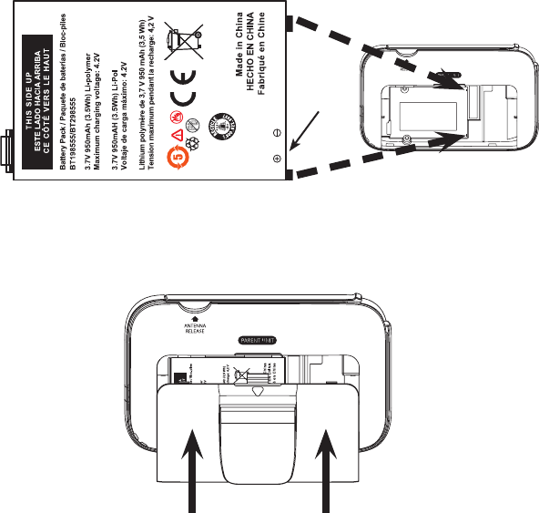 With the label THIS SIDE UP facing up, insert the small tabs of the battery