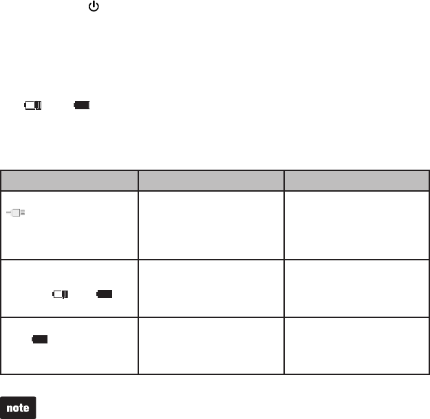 page 10), press for 2 seconds to turn it on. The battery icon indicates the