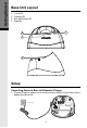 Getting Started Base Unit Layout 1. 2. 3. 4. In Use LED Charging LED Message Waiting LED Page key 1 4 2 3 Setup Connecting Power to Base Unit/Handset Charger 1. Plug the AC power adapter into an electrical outlet, and the DC connector into the bottom of the Base Unit. To AC outlet DC 9V TEL.