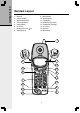 Getting Started Handset Layout 1. 2. 3. 4. 5. 6. 7. 8. Antenna Volume Control Speakerphone LED CID (Scroll Down) Select (Menu) On (Flash) Dialing Keys (0-9, , #) Redial (Pause) 9. 10. 11. 12. 13. 14. 15. 16. Mute (Delete) Speakerphone LCD Display Headset jack (2.