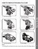 1. Dinosaur shape. 2. Push the jaw up. Then push the head down. 3. Turn the feet down. 4. Flip the legs up. 5. Turn the tail up. 6. Car shape. Note: To change the car back into a dino, reverse the order of the steps above.