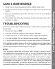 CARE & MAINTENANCE 2. Keep the unit out of direct sunlight and away from any direct heat source. 3. Remove the batteries when the unit is not in use for an extended period of time. 4. Do not drop the unit on hard surfaces and do not expose the unit to moisture or water. TROUBLESHOOTING If for some reason the unit stops working or malfunctions, please follow these steps: 1. Please turn the unit OFF. 2. Interrupt the power supply by removing the batteries. 3.