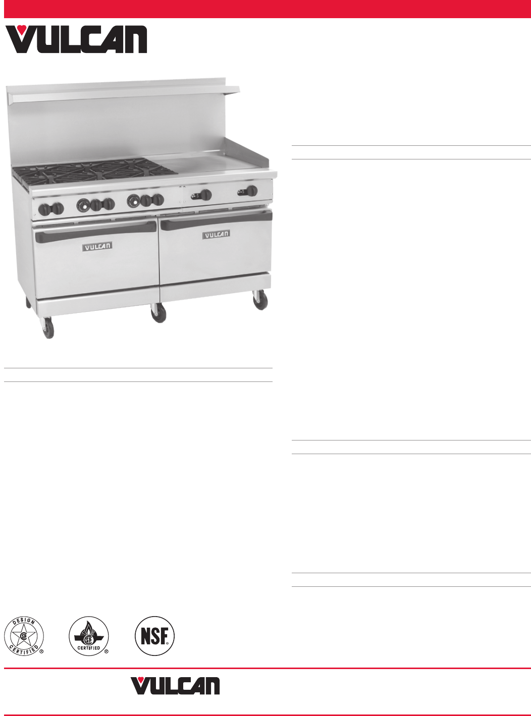 each burner. 7/8” thick x 24” wide manual griddle, 40,000 BTU/