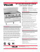 each burner. 7/8” thick x 36” wide manual griddle, 60,000 BTU/hr.