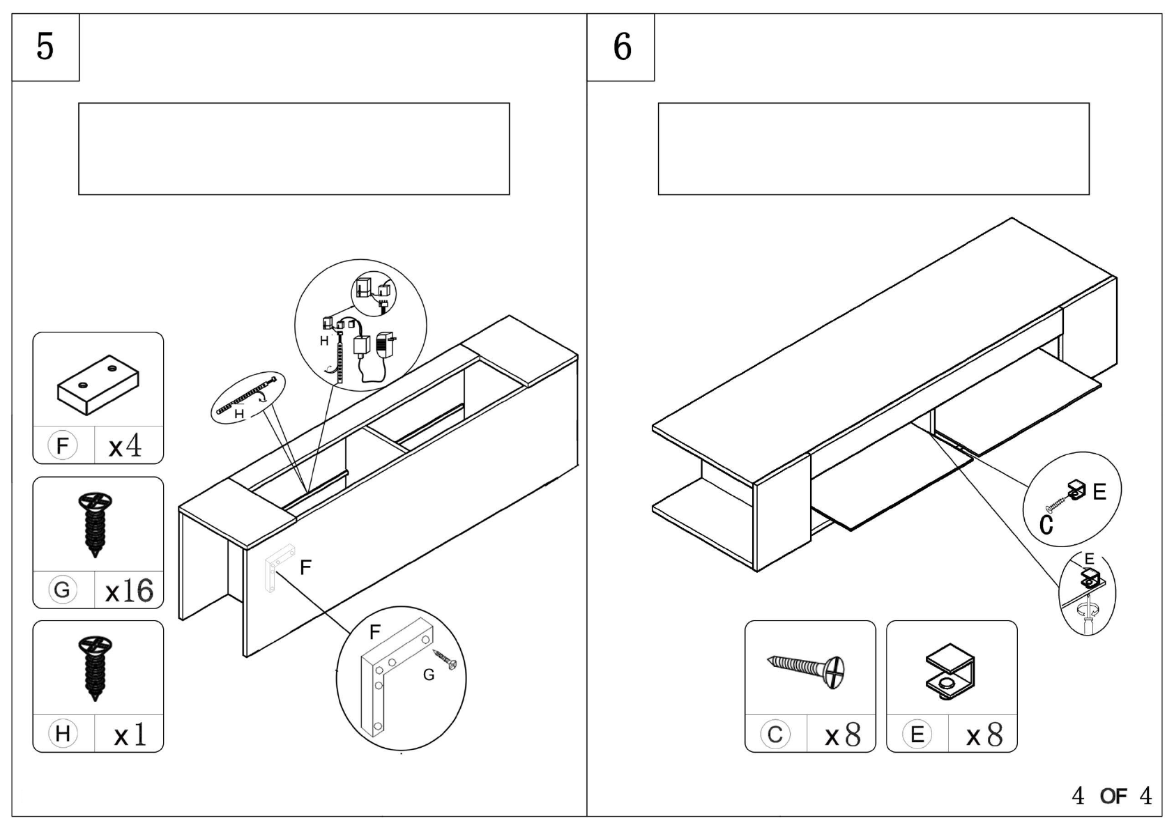 Attach glass clamps(E) to panel(3&4&5) with screw(C)