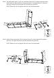 Step 1. Lay back panel (part C) down on a soft flat surface,such as carpet,as shown below. Attach right arm panel (part A) to back panel (part C) using bolts(part #1),washers (part #2),nuts(part #3),wrench(part #5) and allen key (part #4). NOTE:Please do not fully tighten bolts until unit is fully assembled. #2 #3 #5 A #2 #4 #1 C #1 #2 #3 #4 #5 x2 x4 x2 x1 x1 Step 2.