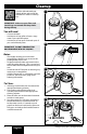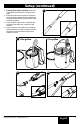 Setup (continued) 3. If using a five-gallon container, insert the small end of the extension into the suction tube. 4. Place the suction tube back into position in the suction tube guide. Make sure the tube (or the extension) reaches the bottom of the material container. 5. Press the quick-release tabs on the handle and attach the roller arm assembly to the handle. 6.